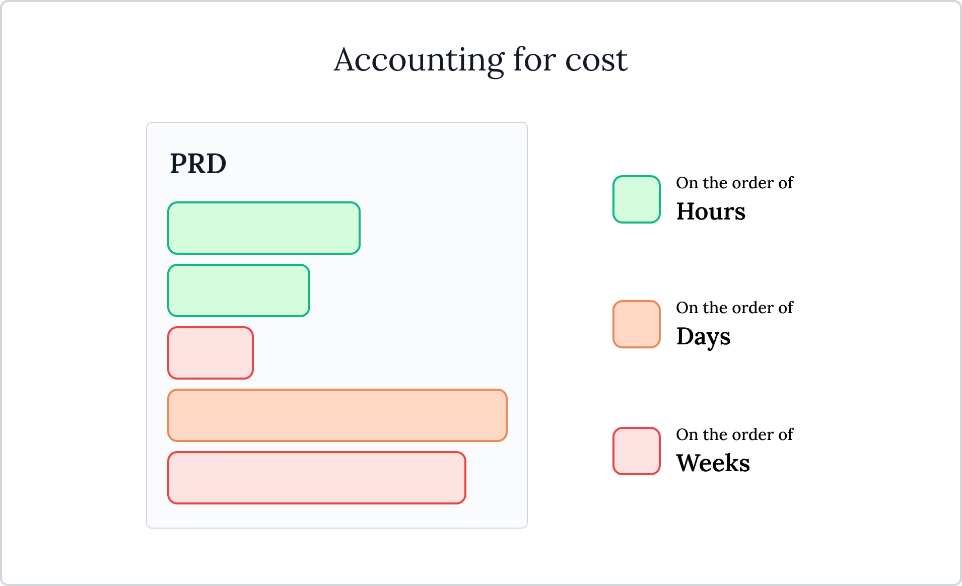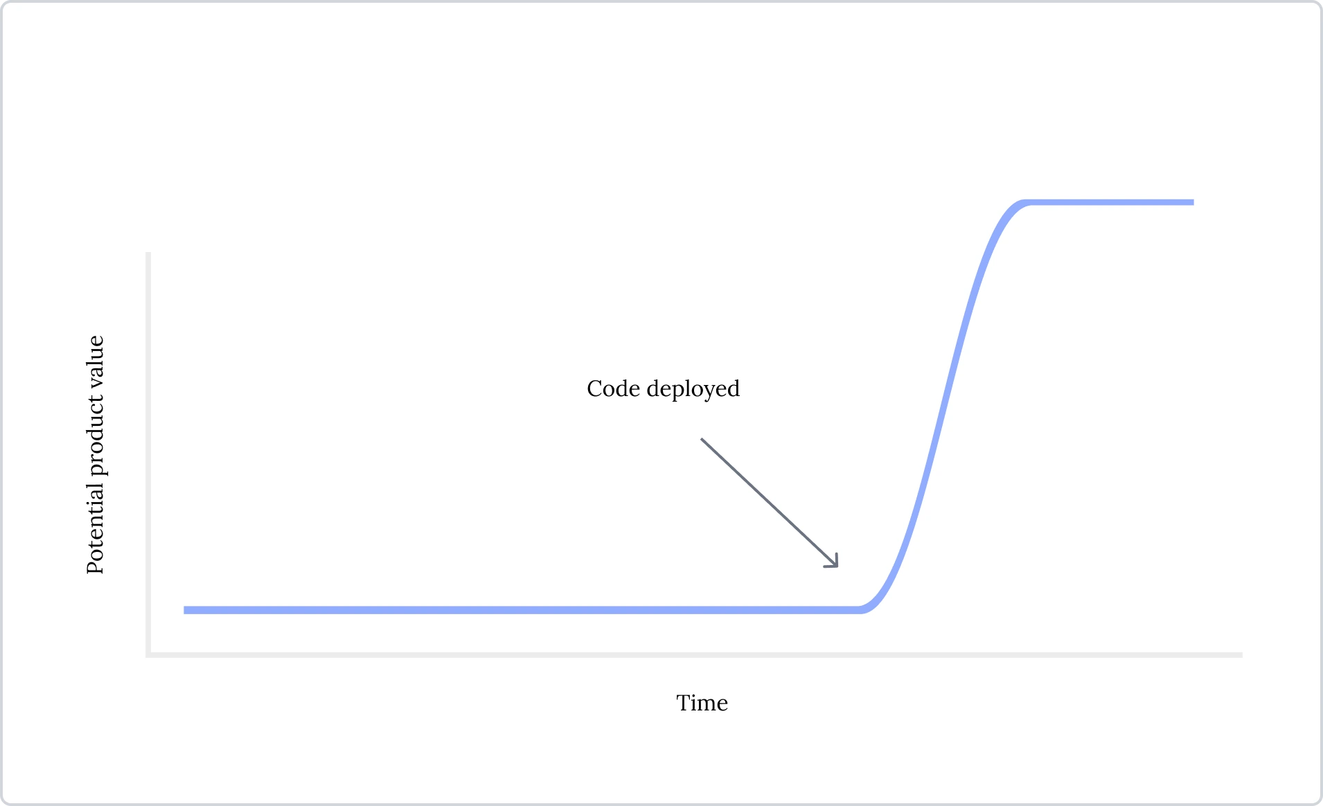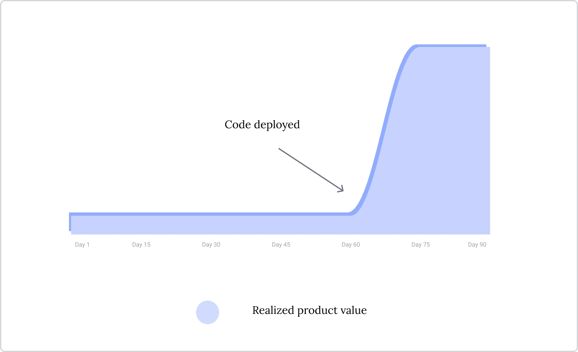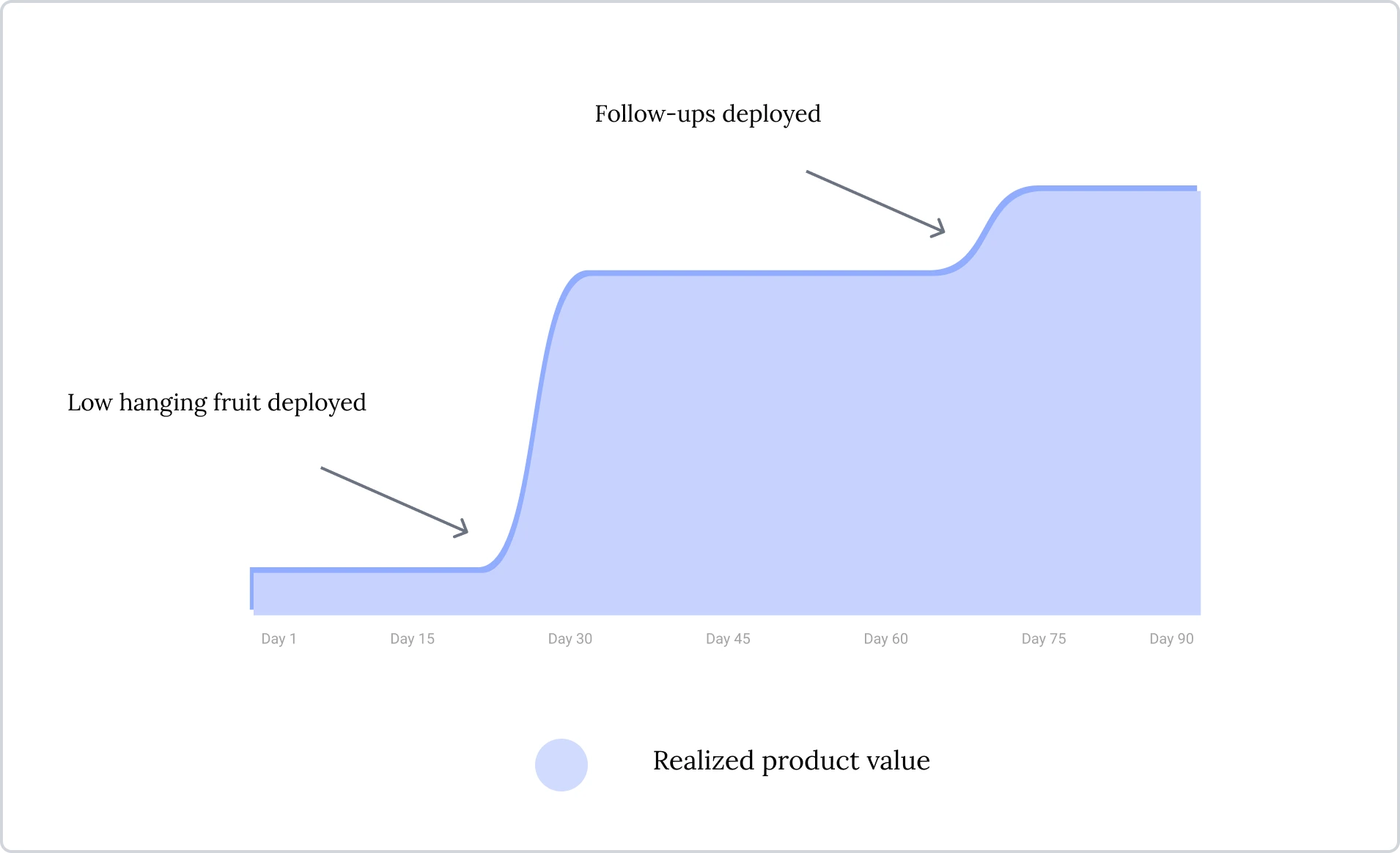 If we instead deferred the "hard" part of the PRD, and shipped the low-hanging fruit first, our realized value would look like…