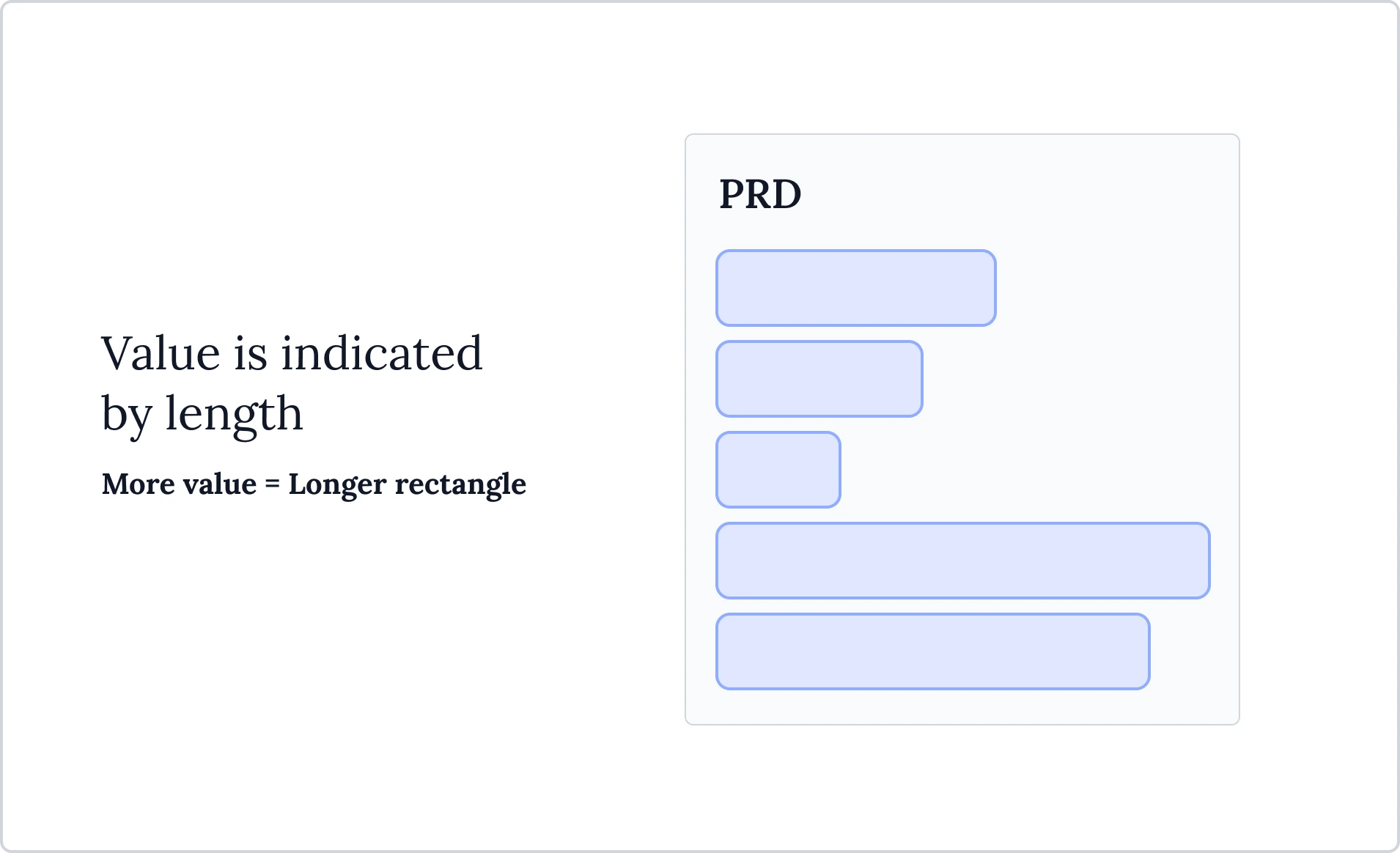 The Product Manager's role is to clarify the problem and value. In this example, value is indicated by length.